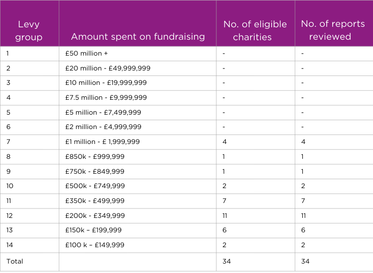 This review aims to provide a benchmark for the charity sector, highlight good practice, and identify areas for improvement in the reporting of fundraising activity. In this report, we have kept all data including the names of organisations, anonymous.